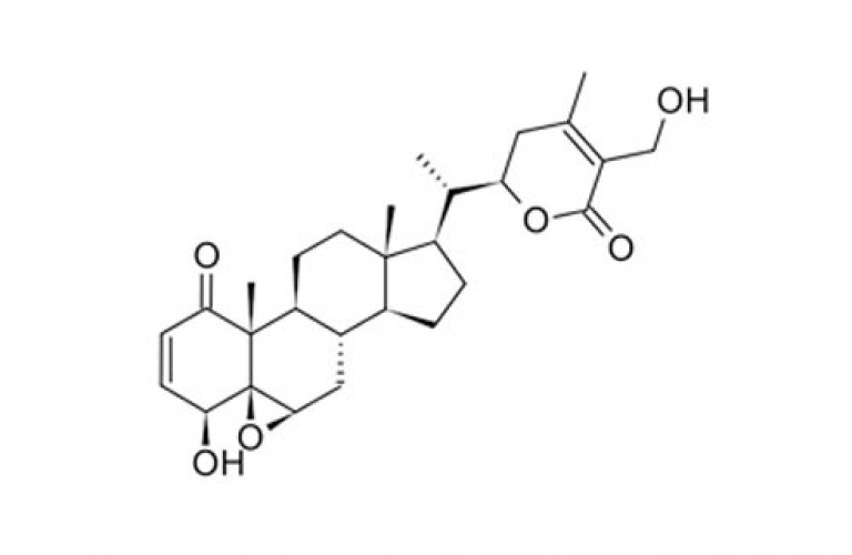 Withaferin A is a steroidal lactone isolated from Winter cherry (Withania somnifera) and is the first member of the withanolides to be discovered. Withaferin A is a potent inhibitor of angiogenesis (the formation of new blood vessels). Withaferin A inhibits both NF-κB and Sp1 Transcription factor activity. Withaferin A also down regulates VEGF gene expression and can affect calcium signaling.